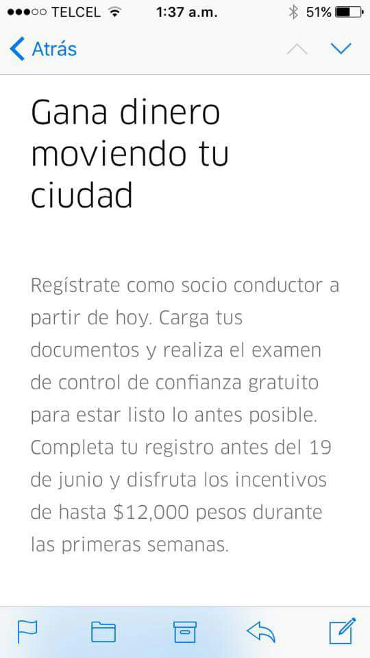 Al mismo tiempo, la plataforma digital abrió su convocatoria para que las personas interesadas en trabajar como chófer y que cuenten con vehículo propio se registren antes del 19 de junio y puedan “disfrutar de los incentivos de hasta 12 mil pesos durante las primeras semanas”.