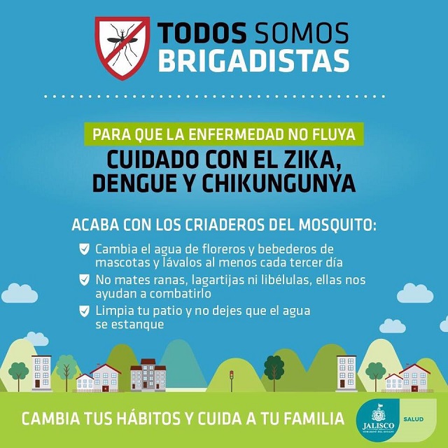 Ante las recientes lluvias, la Secretaría de Salud Jalisco, insta a la población a no bajar la guardia en el combate de las enfermedades Dengue, Zika y Chikungunya, por ello es importante eliminar todos los recipientes que puedan acumular agua y así evitar la reproducción del mosco Aedes Aegypti.