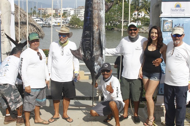 Ya cerca del final de la primera jornada de pesca, apareció la embarcación Martuni con un bonito ejemplar de marlín que apenas pudo rebasar el peso mínimo y con un registro de 106.8 kilogramos, se fueron al primer lugar.