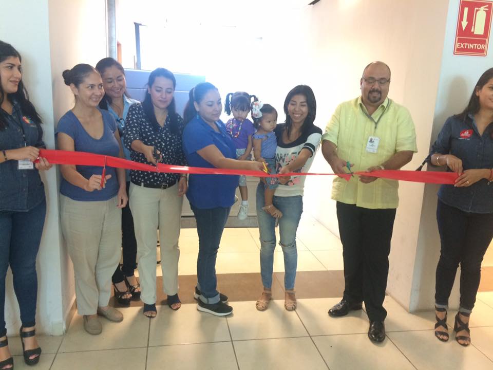 Programa denominado “Apoyo a la Lactancia Materna en Puerto Vallarta”, se ubica en el primer piso del edificio gubernamental y dicha área designada tiene un módulo de atención donde se registran y la sala es un espacio privado con mobiliario para que se sientan cómodas, un refrigerador por si gustan guardar leche materna, así como una mesa para poder cambiar a los bebés.