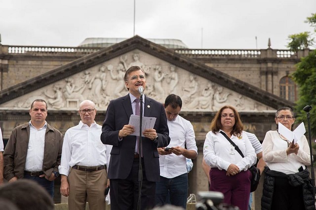 Tras haber encabezado dos grandes contingentes, en una marcha universitaria que congregó a cerca de ocho mil estudiantes en Plaza Liberación, de Guadalajara, donde el rector, Tonatiuh Bravo Padilla, alentando la protesta por crimen del preparatoriano, Francisco Álvarez, victimado al robarle el celular, exige a autoridades de los tres niveles de gobierno, mayor coordinación y atender sin afán protagónico o intereses políticos, la acrecentada inseguridad en alrededores de planteles de la UdeG; del mismo modo, admitió que lamentablemente, al interior de algunos, persiste venta de droga ,algo que urge frenar: