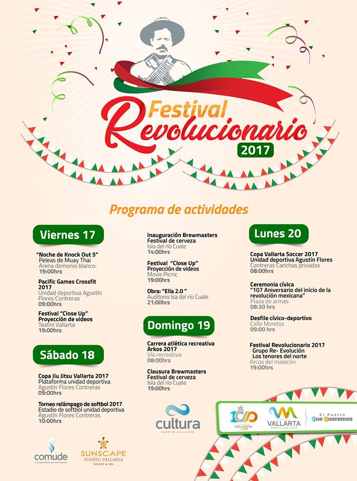 El gobierno municipal que encabeza Arturo Dávalos Peña, a través del Instituto Vallartense de Cultura y el Consejo Municipal del Deporte, ha preparado para los vallartenses y turistas, un atractivo programa de actividades deportivas y culturales con motivo de la celebración de los 107 años de la Revolución Mexicana.