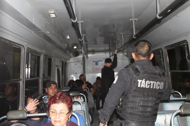 Hernández Valencia explicó que de manera estratégica los elementos se apostan en diferentes calles elegidas aleatoriamente, donde se detiene a las unidades y se realiza una inspección para ubicar a posibles sospechosos entre los pasajeros, vigilar que no porten drogas, armas u objetos que pudieran ser utilizados para agredir a los usuarios y operadores, todo ello apegado a derecho.